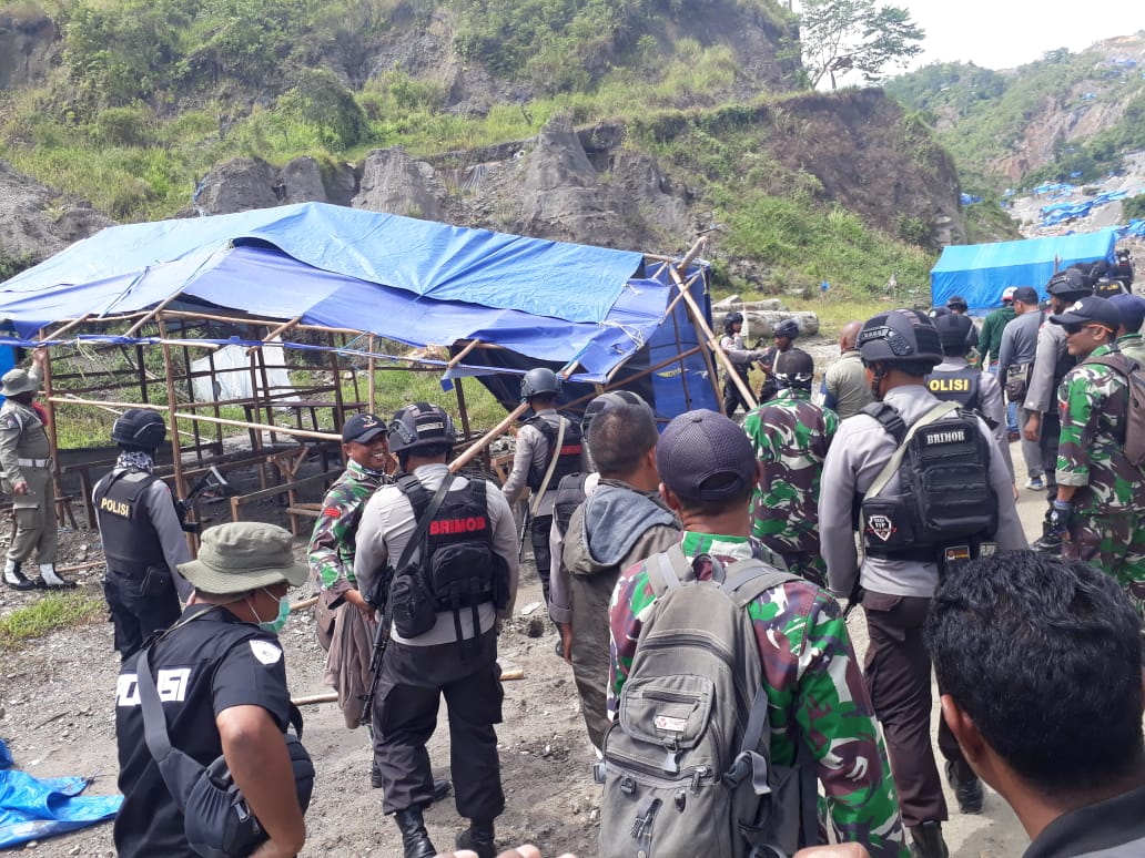 “Laksanakan pembersihan penambang dan tenda-tenda yang ada, perhatikan keamanan dan keselamatan pada saat penyisiran tidak usah arogan, kalau ada penambang dan masyarakat silahkan beri himbauan agar penambang segera meninggalkan lokasi. Jika ada yang lakukan perlawanan yang membahayakan, keluarkan senjata atas perintah saya,” tegasnya.