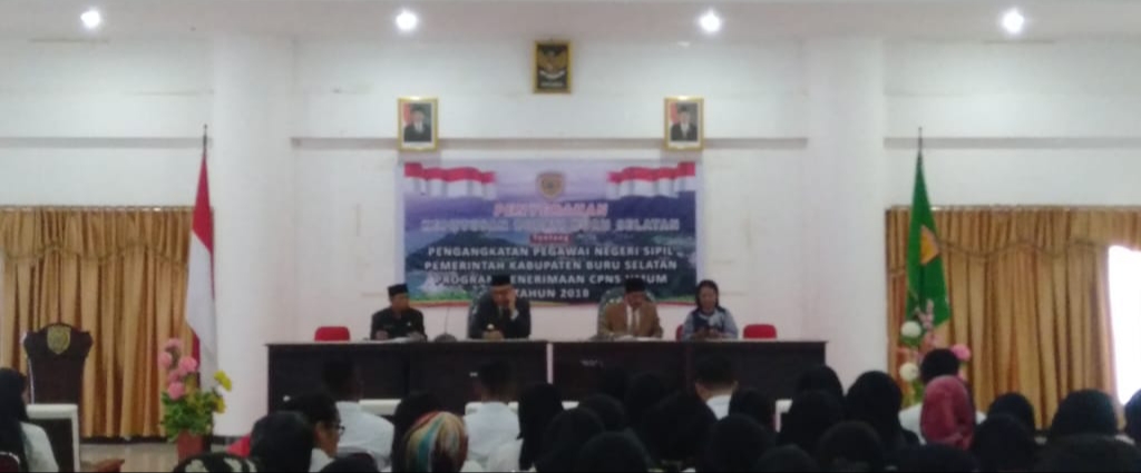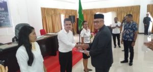 AMBON, MG.com – Bupati Buru Selatan, Dr. Tagop Soulissa menyerahkan SK pengangkatan PNS kepada 201 PNS yang dinyatakan lolos pada rekrutmen CPNS formasi umum 2018.