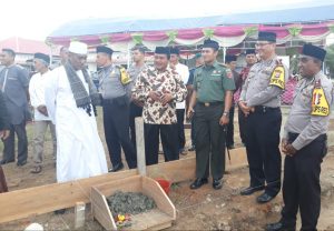 NAMLEA, MG.com – Kapolres Buru, AKBP Ricki Purnama Kertapati meketakan batu oertama pembangunan Masjid AR-RI’AAyah Polres Pulau Buru bertempat di komplex Mapolres Pulau Buru, Senin (1/7/2019).