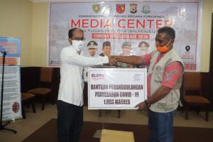 Disusul, bantuan dari PT. Perikanan Nusantara berupa seribu masker kain diserahkan pimpinan PT. Perikanan Nusantara, Minto didampingi Kepala Operasional, Roy dan diterima oleh Sekretaris BPBD Maluku, Sais Salong.