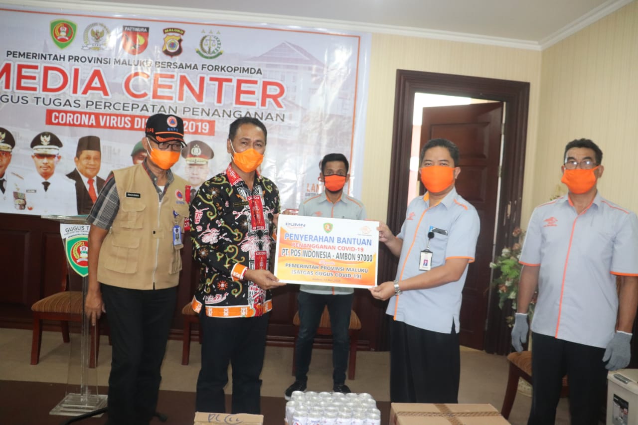 “Kami menyampaikan terima kasih kepada PT. Pos Indonesia Ambon, PT. Perikanan Nusantara, FMB dan semua pihak yang miliki kepedulian dengan adanya wabah ini. Bantuan ini sangat berarti dalam rangka membantu Gustu yang diberikan tugas dan tanggung jawab untuk penanganan virus ini,” kata Far-Far yang juga Kepala Badan Penanggulangan Bencana Daerah (BPBD) Maluku itu.
