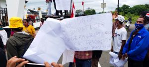 Demo tersebut digelar di depan Kantor Bupati SBB yang terletak Desa Morekau dan dilanjutakan di depan Kantor DPRD SBB, di Jln Trans Seram Desa Piru Kecamatan Seram Barat, SBB.