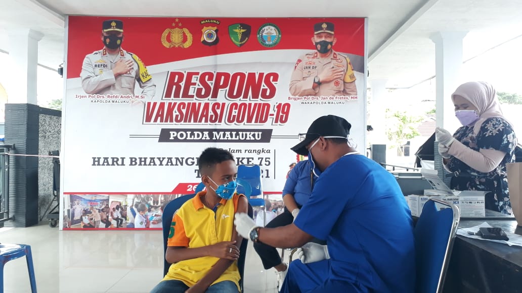 Ambon, MG.com – Sebanyak 215 orang termasuk anak-anak berusia 12 sampai 17 tahun mendatangi Gerai Vaksinasi Presisi (GVP) Polda Maluku di Lapangan Letkol CHR Tahapary, Kota Ambon, Sabtu (28/8/2021).
