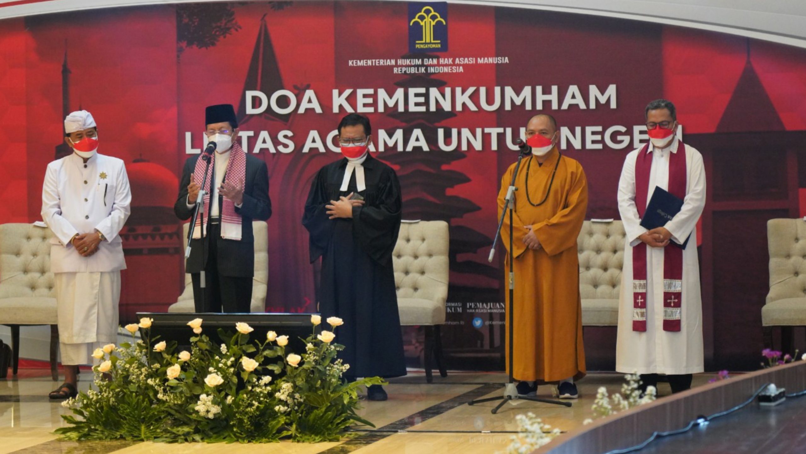 “Semoga ikhtiar ini mampu menggerakkan kesadaran bersama untuk terus mendoakan negeri ini, optimis pandemi akan berlalu,” tutur Menkumham.