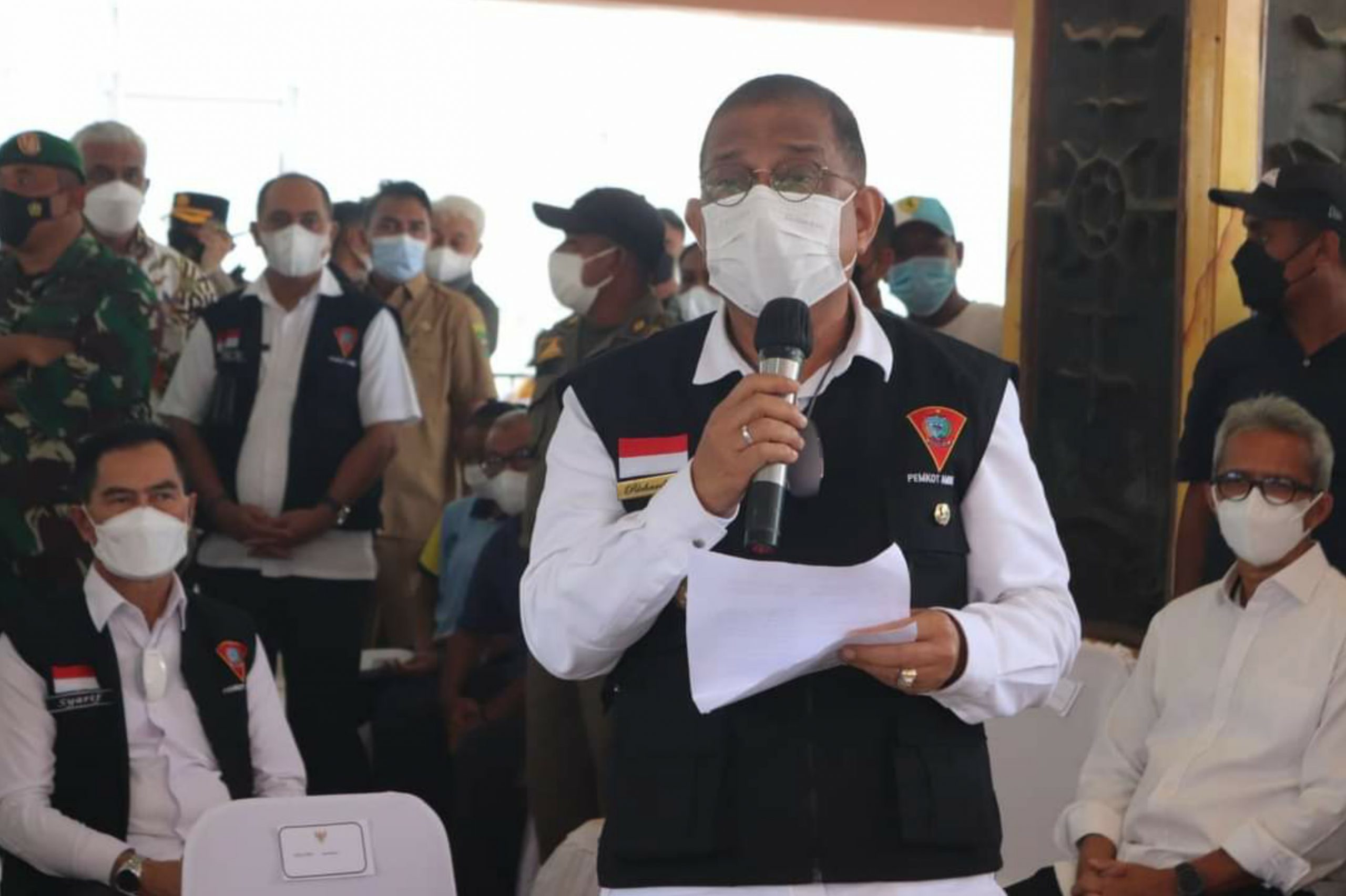 Akui Walikota Ambon Richard Louhenapessy disela – sela tinjuan Selebrasi Vaksinasi Massal Covid-19 yang dilakukan Menteri Koordinator (Menko) Bidang Perekonomian, Airlangga Hartarto, Menteri Perindustrian Agus Gumiwang Kartasasmita, Gubernur Maluku, Murad Ismail bersama jajaran Forkopimda Maluku dan Kota Ambon yang