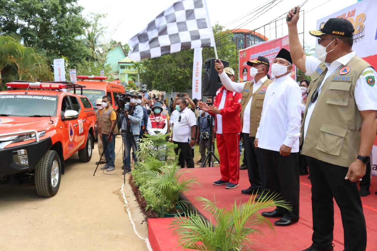 AMBON, MG.com – Kepala Badan Nasional Penanggulangan Bencana (BNPB) RI, Letjen (TNI) Ganip Warsito Menanam Pohon bernilai ekonomis dan melepas Gerakan Mobil Masker di halaman Rektorat IAIN – Negeri Batu Merah Kecamatan Sirimau Kota Ambon, Rabu (20/10/2021).