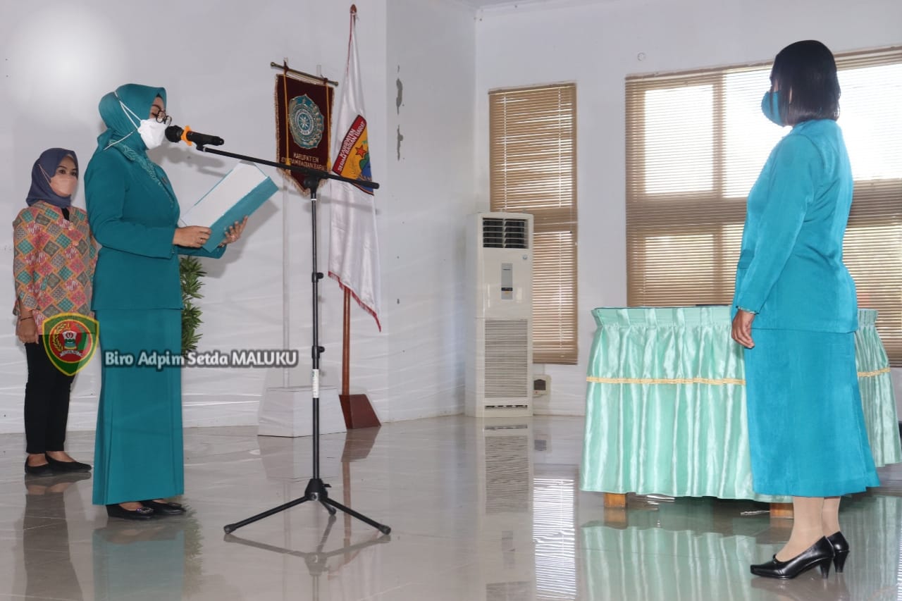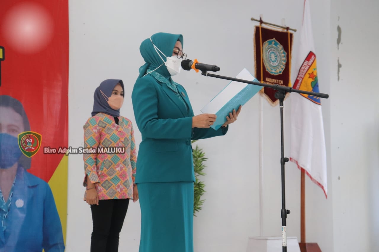 PIRU, MG.com – Ketua Tim Penggerak Pemberdayaan dan Kesejahteraan Keluarga (TP PKK) Provinsi Maluku, Widya Pratiwi Murad Ismail, resmi melantik isteri Bupati Kabupaten Seram Bagian Barat (SBB), Christina Nanlohy/Akerina sebagai Ketua TP PKK Kabupaten SBB Sisa Sisa Masa Bhakti 2017-2022.