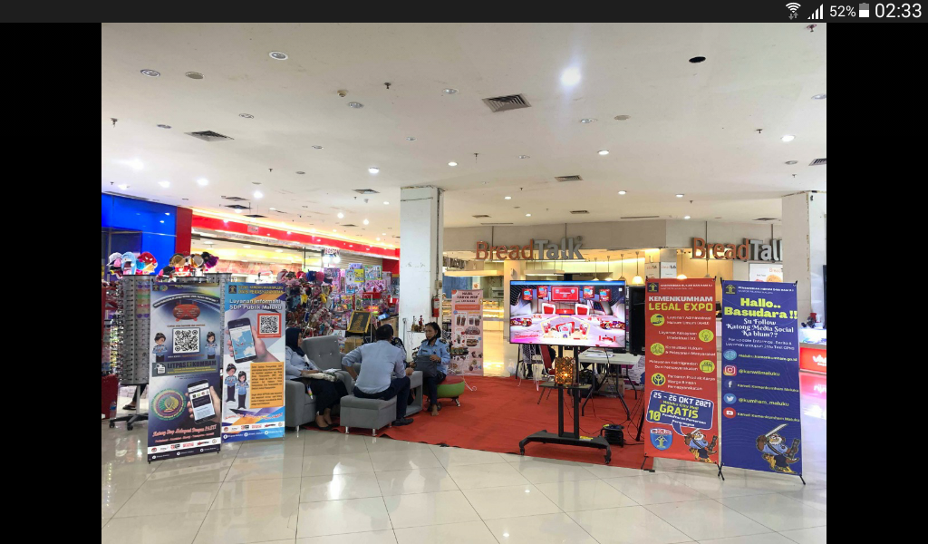 Kegiatan Kemenkumham Legal Expo Tahun 2021 yang dilaksanakan Kanwil Kemenkumham Maluku di Maluku City Mall, juga memberikan Konsultasi Hukum dan Administrasi Hukum Umum secara Gratis, Pelayanan Informasi dan Inovasi Keimigrasian serta Pemasyarakatan, hingga pameran hasil karya Warga Binaan Pemasyarakatan. ( Fal )