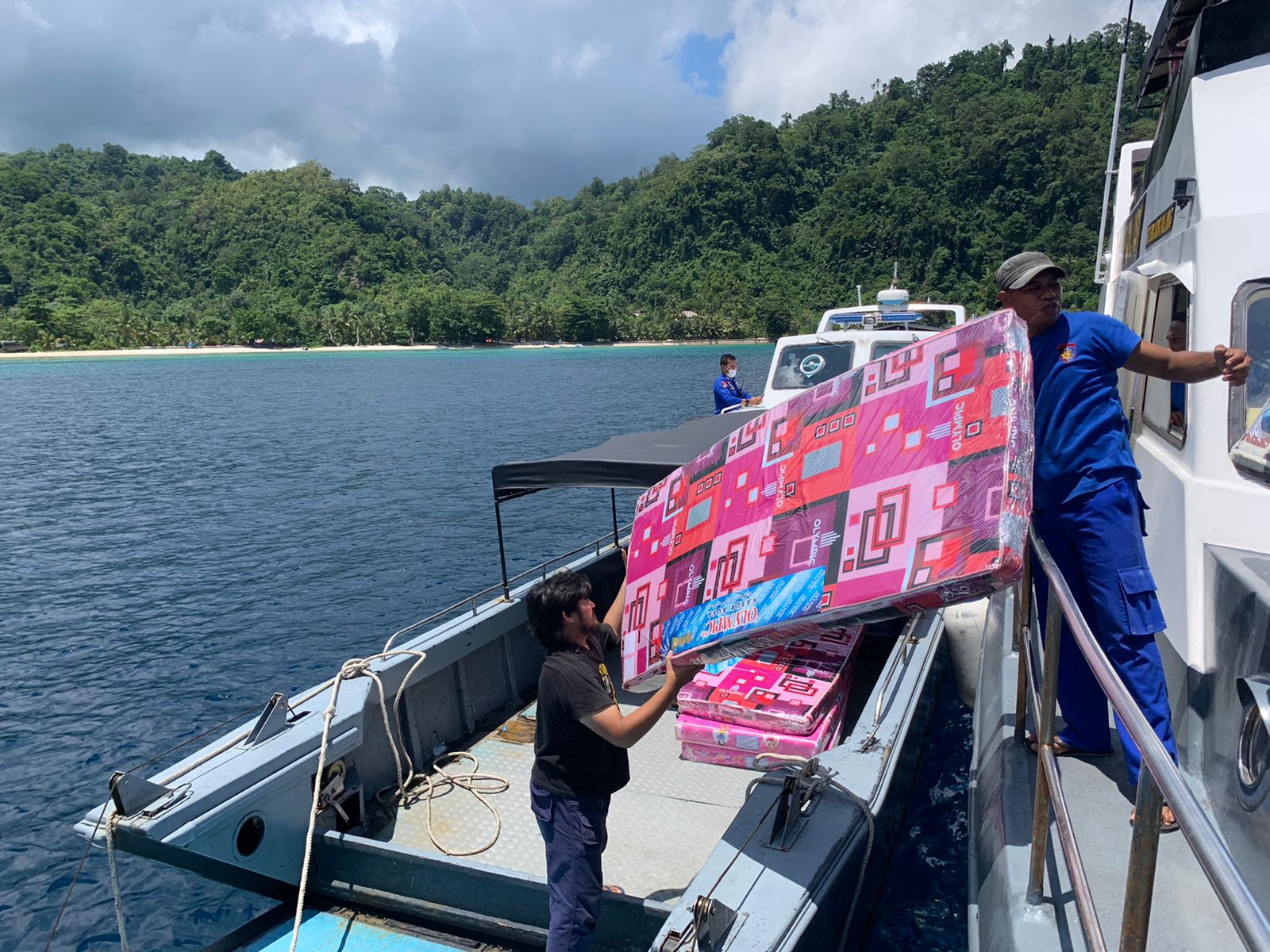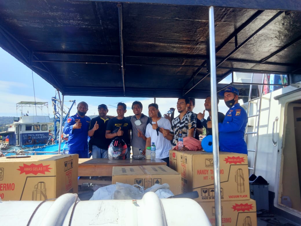 Bantuan sosial berupa ratusan buah kasur, termos, dan sebagainya ini dikirim personel Direktorat Polairud (Ditpolairud) Polda Maluku menggunakan KP. XVI – 3001 Tg. Alang dan KP. XVI – 2003, Minggu (13/3/2022).