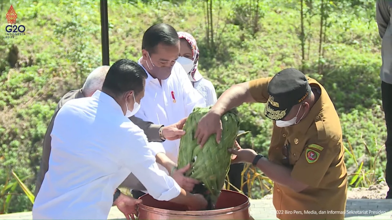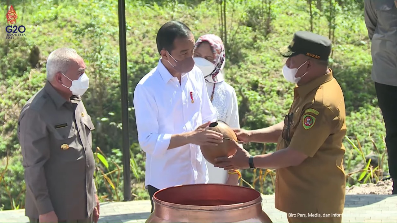 Gubernur Maluku, Murad Ismail membawa air dan tanah dari Negeri Hila – Kaitetu, Kecamatan Leihitu, Kabupaten Maluku Tengah (Malteng) untuk ditaruh di Titik Nol Geodesi lbu Kota Negara (IKN) Nusantara, Senin (14/03/2022), dan menansm pohon khas daersh itu.