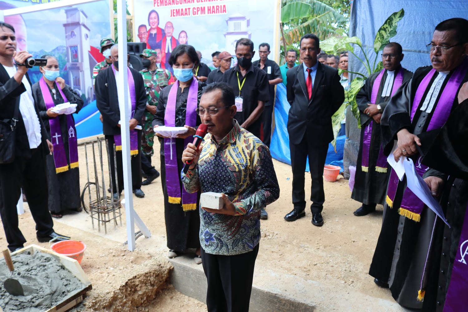 AMBON, MG. com – Wakil Gubernur Maluku Barnabas Nathaniel Orno, meletakkan Batu Penjuru pada pembangunan gedung Gereja Lahatol Jemaat GPM Haria, Kecamatan Saparua, Kabupaten Maluku Tengah, Minggu, (13/03/2022).