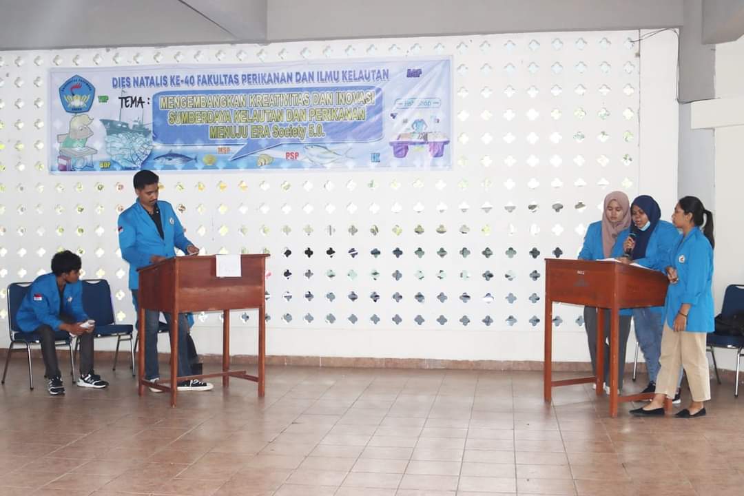 Maluku,MG.com- Fakultas Perikanan dan Ilmu Kelautan Universitas Pattimura melaksanakan Kegiatan Lomba Debat dan Expo. Kegiatan tersebut dilaksanakan dalam rangka Dies Natalis ke-40 Fakultas Perikanan dan Ilmu Kelautan Universitas Pattimura. Untuk kegiatan Lomba Debat Berlangsung di Hall FPIK dengan mengusng tema “Mengembangkan Kreativitas dan Inovasi Sumberdaya Kelautan dan Perikanan Menuju Era Society 5.0” dan Kegiatan Expo berlangsung di Ruang Kuliah 1.1 FPIK dengan mengusung tema “Kreativitas dan Inovasi di Bidang Perikanan dan Kelautan”, Jumat (2 September 2022). Kegiatan ini dihadiri oleh Sivitas Akademika FPIK, para dewan juri dan peserta lomba.