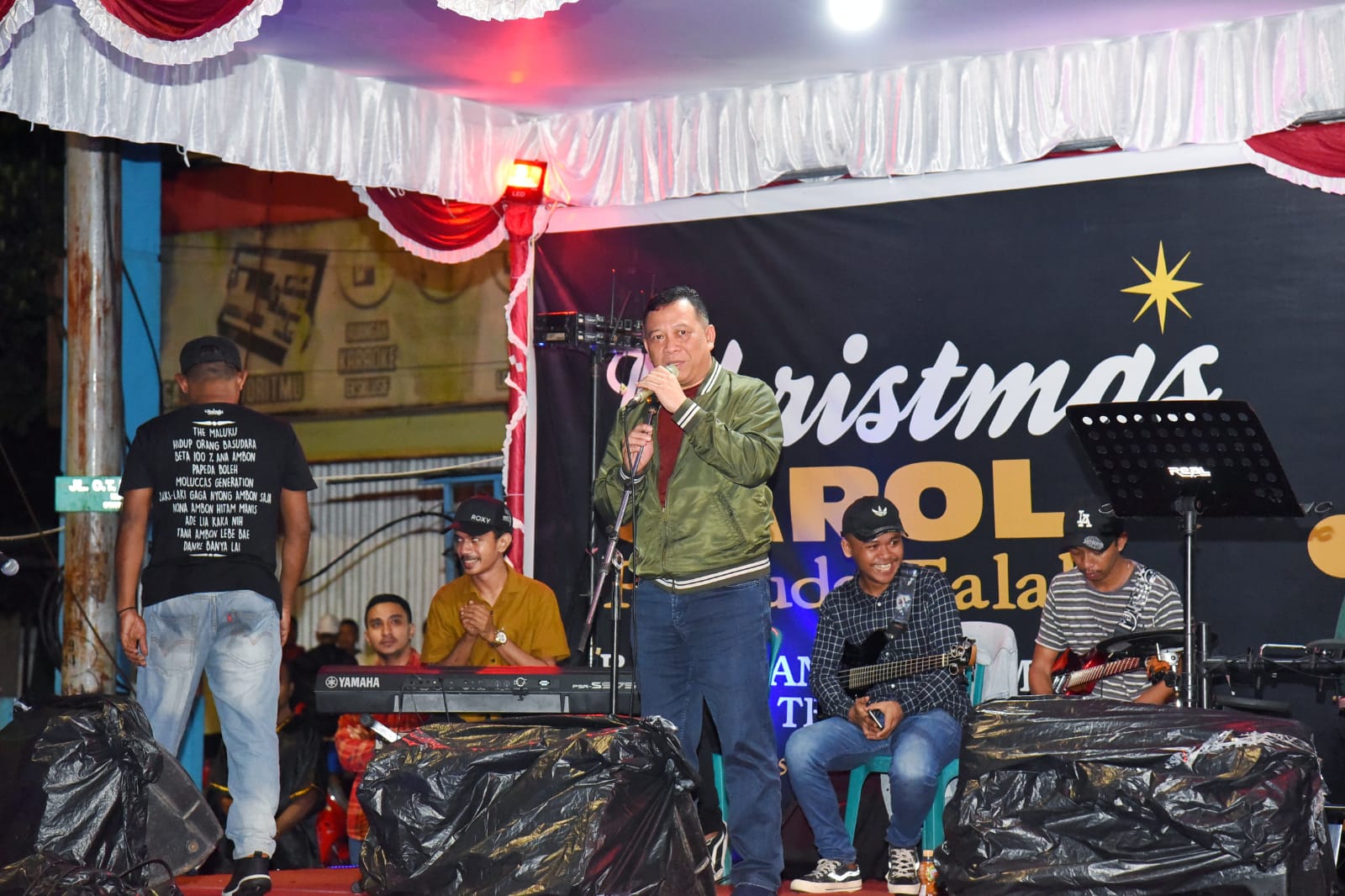 Saat menyapa masyarakat, Kapolda Maluku Lotharia Latif memberikan apresiasi yang tinggi atas pelaksanaan kegiatan perayaan Christmas Carol yang digelar oleh Pemuda Talake.