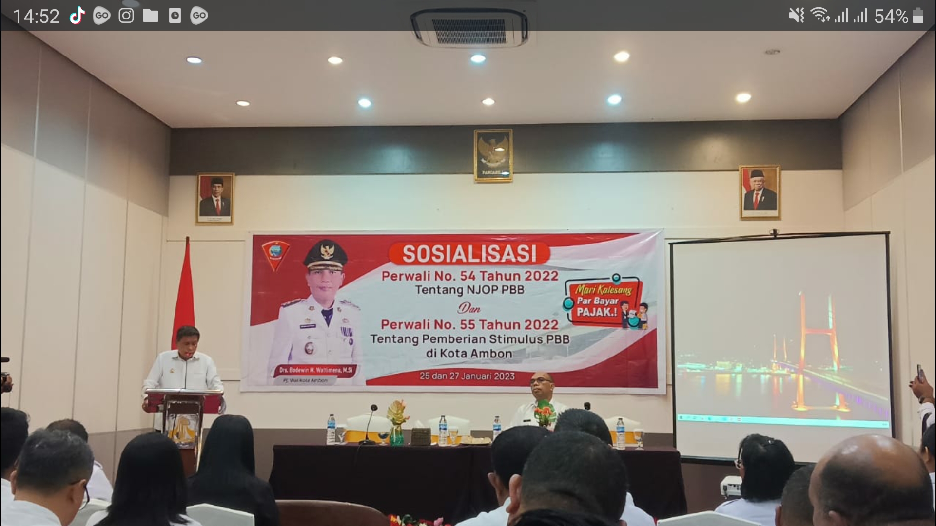 Pemerintah Kota Ambon dalam hal Badan Pengelolaan Pajak dan Retribusi Daerah (BPPRD) mengelar sosialisasi peraturan walikota nomor 54 tahun 2022 tentang Nilai Jual Objek Pajak ( NJOP ) PBB dan Peraturan walikota nomor 55 tahun 2022 tentang pemberian stimulan PBB kepada wajib pajak Rabu (25/1/2023).