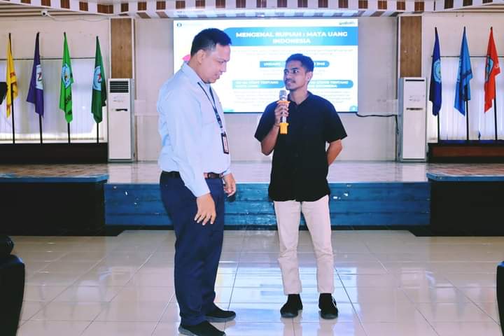 Sosialisasi ini menghadirkan 2 narasumber yakni, Racman Saleh dengan materi CBP ( Cinta Bangga paham Rupiah) dan Zefanya D. Lingga dengan materi QRIS (Quick Response Indonesia Standard). ( Fal )