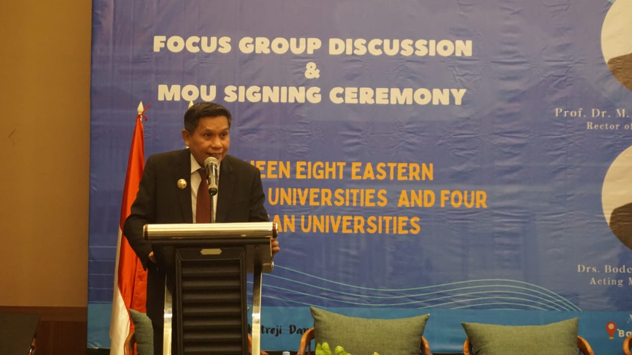 Ambon,MG.com -Berlangsung pada hotel santika penjabat walikota Ambon Bodewin Wattimena menghadiri kegiatan fokus grup Discussion ( FGD) penandatanganan memorandum of understanding ( MOU) yang fasilitasi oleh universitas pattimura,Jumat (22/09/23).