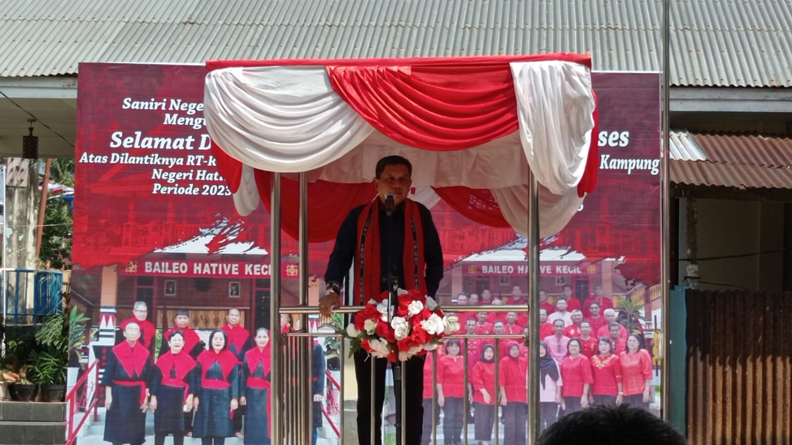 Ambon,MG.com- Berlangsung pada Baileo negeri Hative kecil penjabat walikota Ambon Bodewin Wattimena menghadiri pelantikan RT/RW Negeri Hative Kecil,Sabtu ( 11/11/23).