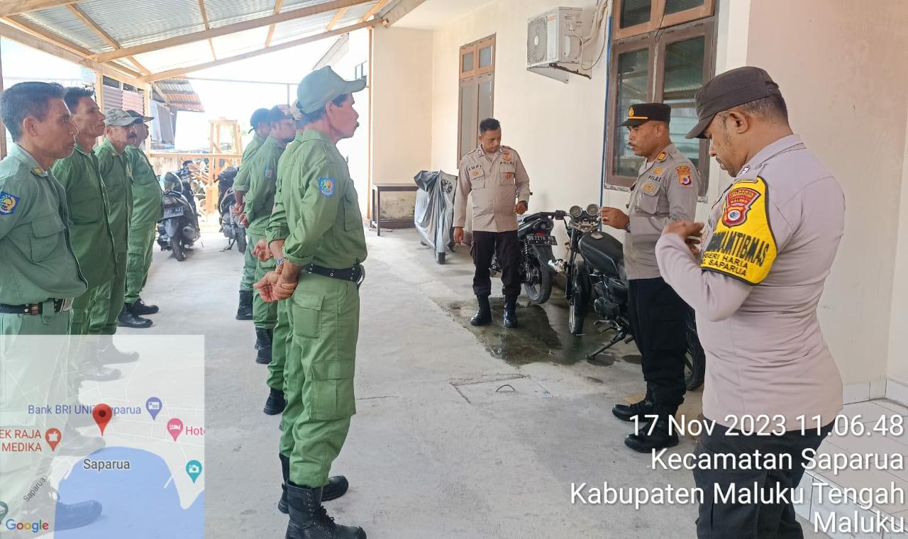 Saparua,MG.com – Selain bersirgi dengan TNI dalam rangka persipan pengamanan pemilu 2024, pihak kepolisian yakni Polsek Saparua juga melibatkan Satuan Perlindungan Masyarakat ( Satlinmas ) yang ada di negeri – negeri khususnya di kecamatan pulau saparua.