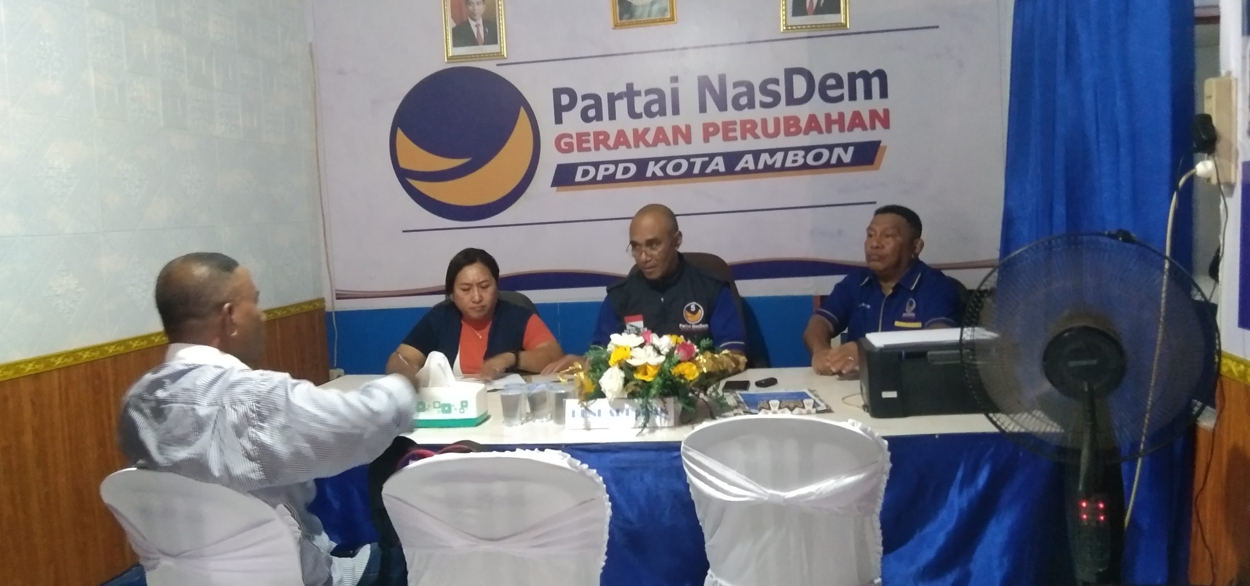 “Sebelumnya terima kasih kepada pimpinan partai NasDem Kota Ambon dan jajaran beserta tim penjaringan yang telah menerima kehadiran kami. Kedatangan kami tentu menjadi bukti bahwa Pak Ferly Tahapary serius untuk mengikuti Pilkada serentak nanti,” ujar