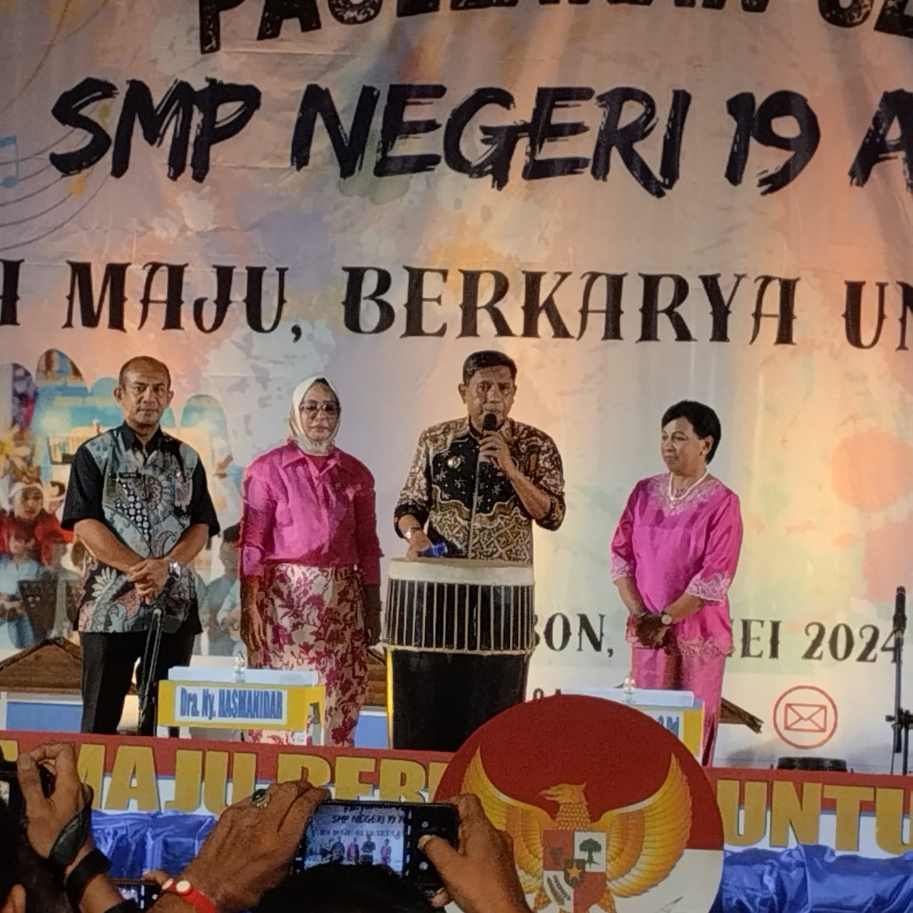 Ambon,MG.com-Penjabat Walikota Ambon Bodewin watimena menghadiri sekaligus membuka secara resmi kegiatan pergelaran Seni SMP negeri 19 Ambon yang berlangsung pada Baileo oikumene Kota Ambon Kamis ( 17/05/24).