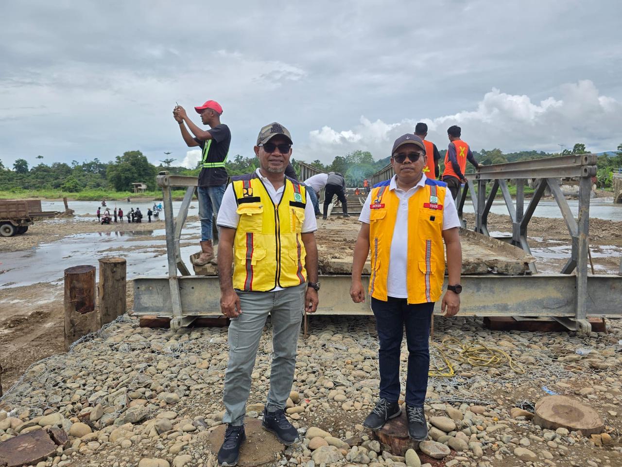 Dari hasil pantauan di lokasi pekerjaan, pemasangan Rangka Darurat (Bailey) dan pekerjaan lainnya seperti pemasangan rangka serta pengelasan sudah mencapai progres 80 persen.