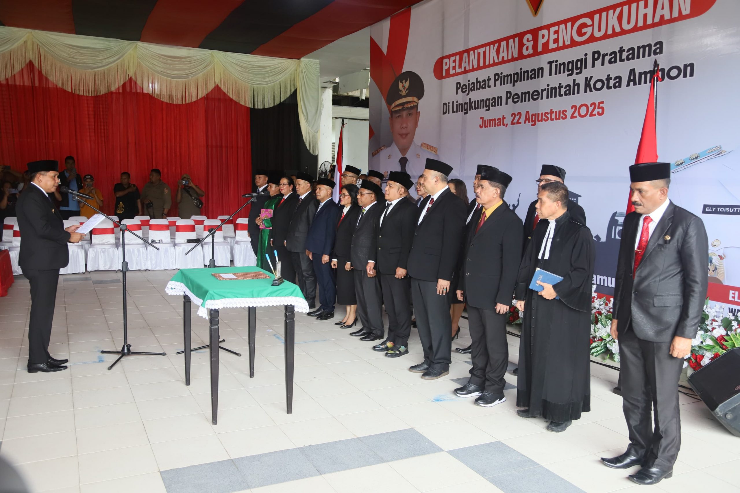 Ambon,MG.com- Walikota Ambon, Bodewin Wattimena, melantik dan mengukuhkan pejabat pimpinan tinggi Pratama di lingkup Pemerintah Kota Ambon berlangsung pada gedung transit Passo,Jumat ( 22/08/25)
