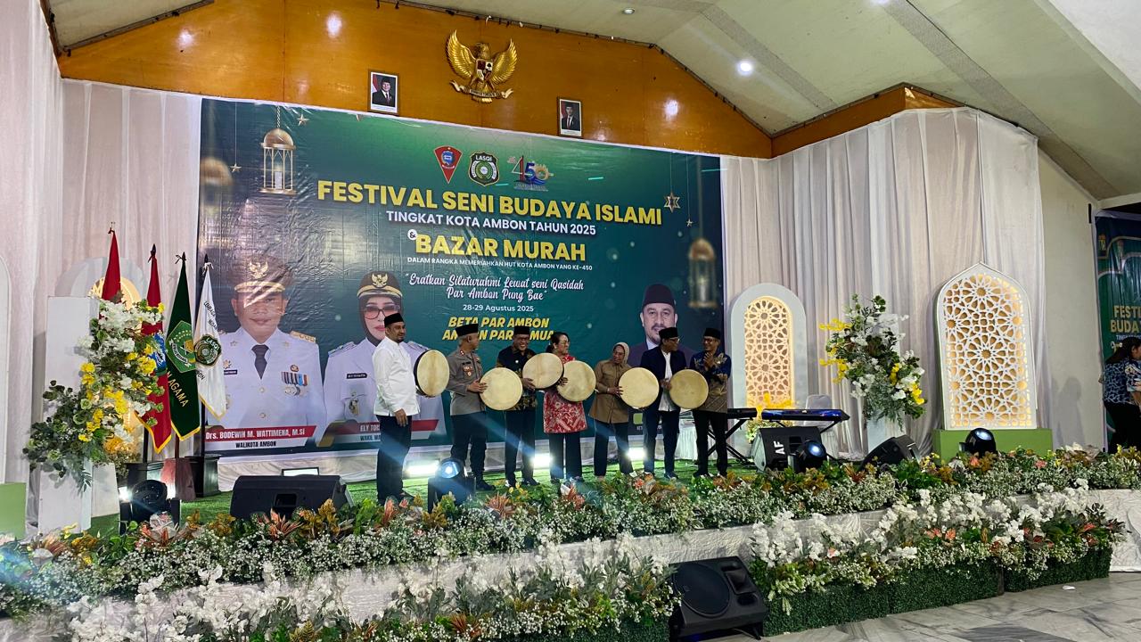 Ambon,MG.com-Walikota Ambon Bodewin Wattimena secara resmi membuka kegiatan Festival Seni Budaya Islami dan Pemilihan Duta Qasidah Kota Ambon tahun 2025.