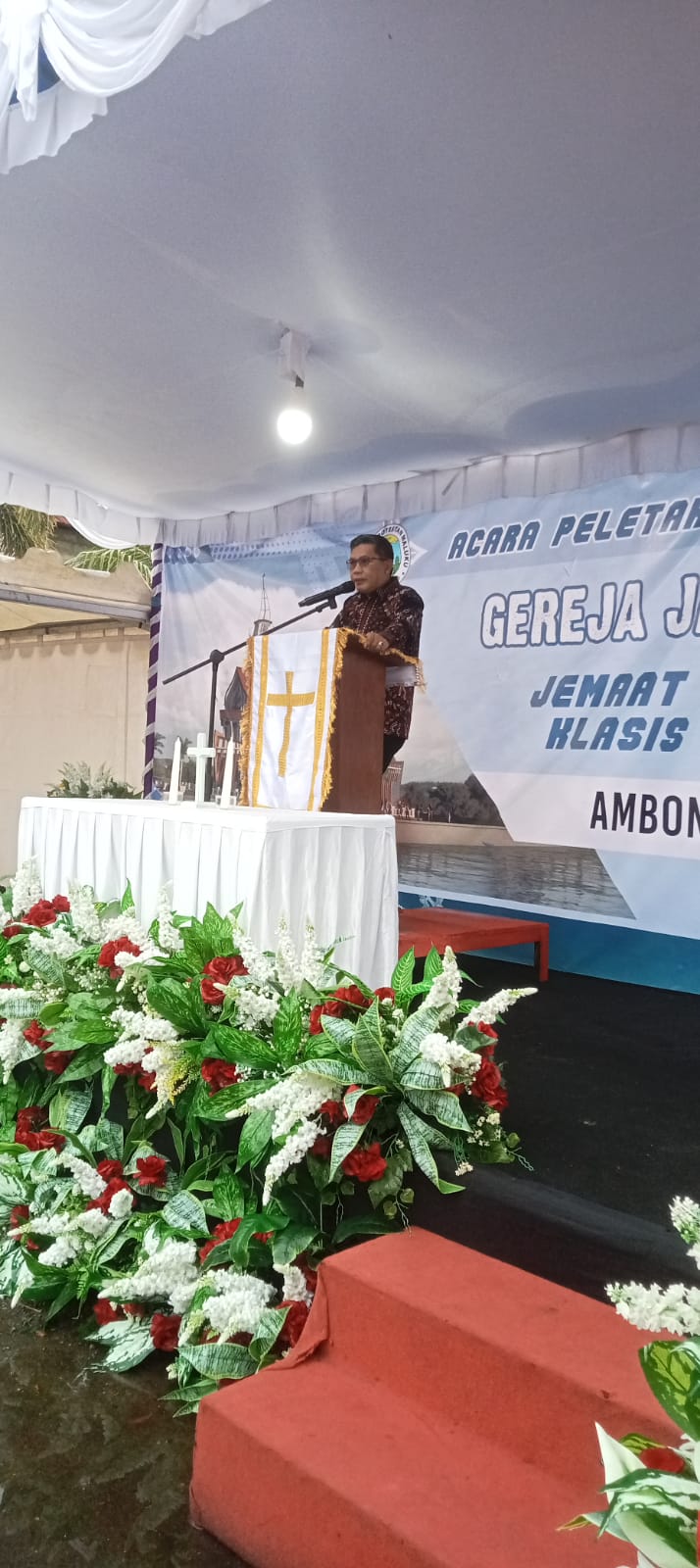 “Ketua Sinode Gereja Protestan Maluku (GPM) menyampaikan rasa syukur dan terima kasih kepada Tuhan atas berkat dan dukungan yang diberikan kepada GPM. Ia juga menyampaikan terima kasih kepada pemerintah, khususnya Pemerintah Kota Ambon, yang telah memberikan tanah untuk pembangunan Gereja Jangkar Iman.