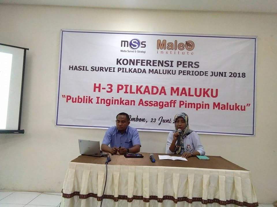 AMBON, MenaraGlobal.com – “Jika Pilkada diadakan hari ini, pasangan Said Assagaff-Andreas Rentanubun dengan akronim SANTUN memperoleh 34,70 persen dukungan responden pertanda masih diinginkan masyarakat Maluku untuk jadi Gubernur dan Wakil Gubernur Maluku,” kata Husain Marasabessy, Direktur Media Survei dan Strategi (MSS) dibawah naungan Maleo Institute, kepada wartawan di Ambon saat merilis hasil surveinya, Sabtu (23/06/2018).