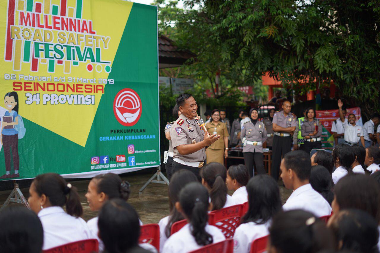 AMBON, MG. com – Selasa, (22/01/2019) Ditlantas Polda Maluku melaksanakan kegiatan Sosialisasi Millenial Road Safety Festival (MRSF) di SMA Kristen YPKPM Ambon dan diikuti 529 siswa SMA Kristen YPKPM Ambon.