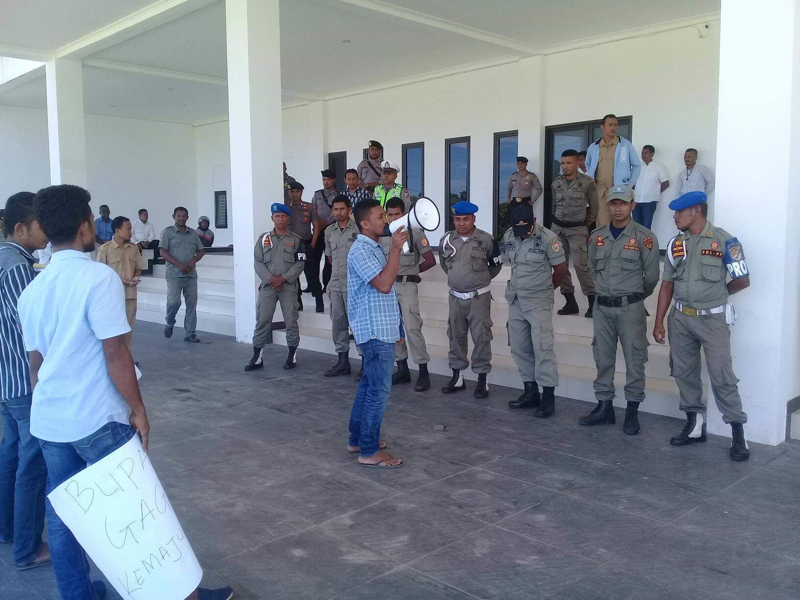 Asisten satu Alfario Soumokil juga memerintahkan kepada Kasat Pol.Pp Asnawy Gay meminta pendemo dapat menyampaikan tuntutan mereka dalam ruangannya juga tak digubris, ditolak pendemo.