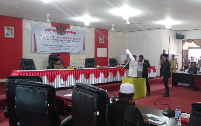 Usai lakukan perhitungan suara, dan penandatangan berita acara hasil pemilihan, dilanjutkan dengan Paripurna dalam rangka pengumuman pengangkatan Wakil Bupati Bursel sisa masa jabatan 2016-2021..