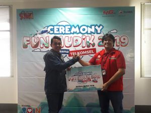 “Sebanyak 30 pemenang mudik gratis yang mengunakan transportasi kapal laut telah diberangkatkan Senin (27/05/2019) sedangkan untuk 20 pemenang mudik gratis ini akan berangkat menggunakan Pesawat Garuda pada Rabu, (29/05/2019) pukul 08.20 Wit,” VP ICT Network Management Telkomsel Area Pamasuka (Papua, Maluku, Sulawesi dan Kalimantan), Samuel Pasaribu, saat Ceremony Fun Mudik 2019 Bersama Telkomsel, di lantai II Kantor Telkomsel Branch Ambon, Selasa, (28/05/2019).