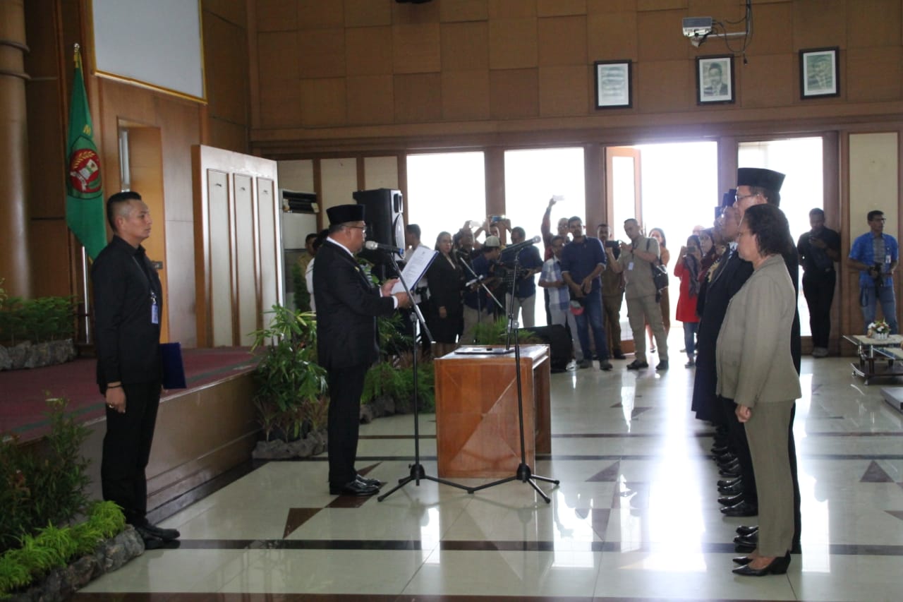 AMBON, MG.com – Gubernur Maluku, Irjen. Pol (Purn) Murad Ismail melantik serta mengambil sumpah 10 (sepuluh) pejabat Eselon II Lingkup Pemerintah Provinsi Maluku. Pelantikan yang berlangsung di lantai 7 kantor Gubernur, Selasa (23/7) dihadiri Wakil Gubernur Maluku, Barnabas Orno, Sekretaris Daerah Maluku, Hamin bin Thahir, Kepala Kejaksaan Tinggi Maluku, Haryono Triyono, Ketua DPRD Maluku, Edwin Huwae, Rektor Unpatti, M.Sapteno serta pimpinan OPD Lingkup Pemprov Maluku.
