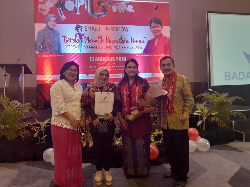 AMBON, MG.com – BPOM RI serentak menggelar Talk Show ‘Cerdas Memilih Kosmetika Aman’. Kegiatan ini juga dilaksanakan BPOM Ambon, dengan menghadirkan Deputi BPOM Kementerian Kesehatan, Mayagustina Andarini, Selasa (13/08/2019).