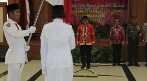 AMBON, MG.com – Gubernur Maluku, Drs. Murad Ismail, mengukuhkan sebanyak 54 anggota Pasukan Pengibar Bendera (Paskibra) Provinsi Maluku yang akan menaikan Sang Saka Merah Putih pada HUT RI ke 74 di Laoangan Merdeka Ambon pada 17 Agustus 2019.