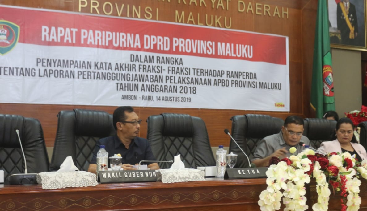 Sebelumnya, sambutan Gubernur Maluku yang dibacakan oleh Wakil Gubernur Maluku, bahwa laporan pertanggungjawaban pelaksanaan APBD tahun 2018 telah dibahas secara arif dalam semangat kemitraan dan menunjukan komitmen bersama untuk mengawal suksesnya penyelenggaraan Pemerintah Daerah Maluku.