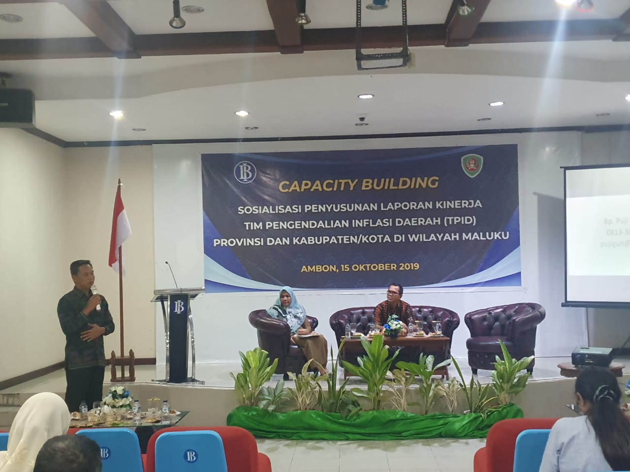 AMBON, MG.com – KPw Bank Indonesia gelar Capacity Building Sosialisasi Penyusunan Laporan Kinerja Tim Pengendalian Inflasi Daerah (TPID) yang berlangsung di aula Kantor Perwakilan Bank Indonesia Provinsi Maluku, Selasa (15/10) yang dihadiri perwakilan tim teknis TPID dari 11 kabupaten dan kota di Provinsi Maluku serta perwakilan dari Organisasi Perangkat Daerah Provinsi Maluku yang aktif sebagai anggota dari TPID Provinsi Maluku.