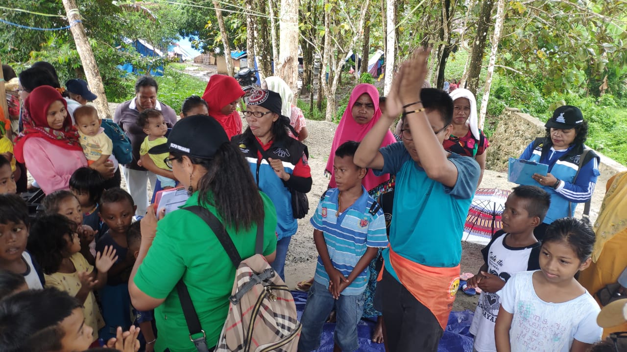 55 tenaga relawan diterjunkan, Sabtu, (19/10/2019) untuk mengatasi rasa trauma di masyarakat Kecamatan Salahutu yang terdampak gempa.