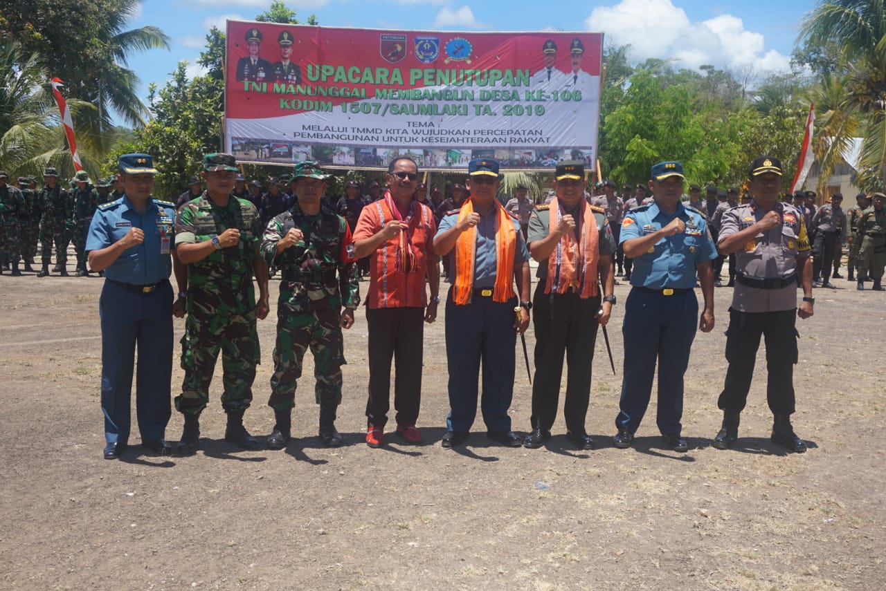 AMBON, MG.com – Diawali dengan penyambutan upacara Adat khas Masyarakat Saumlaki, Komandan Pangkalan Utama TNI AL (Danlantamal) IX Ambon Laksamana Pertama (Laksma) TNI Budi Purwanto S.T., M.M menutup secara resmi kegiatan TNI Manunggal Membangun Desa (TMMD) ke -106 th. 2019 di Desa Lermatang Kecamatan Tanibar Selatan Kabupaten Kepulawan Tanibar (KKT),
