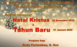 Iklan Natal dan Tahun Baru Pemneg Liang Kec. T. Elpaputih Kabupaten Maluku Tengah admin8 Desember 20198 Desember 2019 Raja beserta Keluarga dan Pemerintah Negeri Liang Kecamatan Teluk Elpaputih Kabupaten Maluku Tengah Pos terkaitKomisi II DPRD Maluku Desak Pengadaan Mesin Kapal Sesuai Kebutuhan Nelayan Buru SelataOJK Maluku Gelar Moluccas Financial Day 2025, Perkuat Inklusi Keuangan di Maluku TengahPembangunan Infrastruktur Ambon Dipacu, Wali Kota Puji Dukungan Kementerian PUPRAmbon Persiapkan Atlet Muda Hadapi POPMAL 2026 Lewat Turnamen U-20Wali Kota Pastikan Stok Bahan Pokok Aman, Pemkot Ambon Gelar SidakWalikota Ambon Buka Kegiatan E – Sport Evolution Soccer Dan E – Football