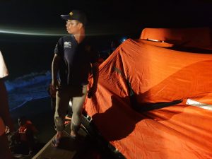 Selanjutnya dilakukan evakuasi penumpang dari dalam kapal menggunakan liferaft yang tersedia di kapal.