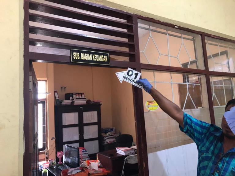 “Pegawai cleaning service ini menyaksikan pintu pagar telah terbuka. Pintu utama kantor dan ruang kerja bendahara juga terbuka ” jelasnya.