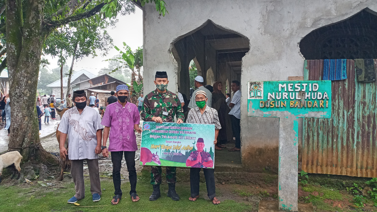 Penyaluran bantuan hewan Qurban tersebut merupakan salah satu bentuk kepedulian sosial Danrem 151/Binaiya terhadap masyarakat sekitar yang membutuhkan, terlebih adanya pandemi Covid-19 yang sedang mewabah di beberapa wilayah Indonesia berdampak ke segala aspek terutama pada sektor ekonomi warga. (D2)