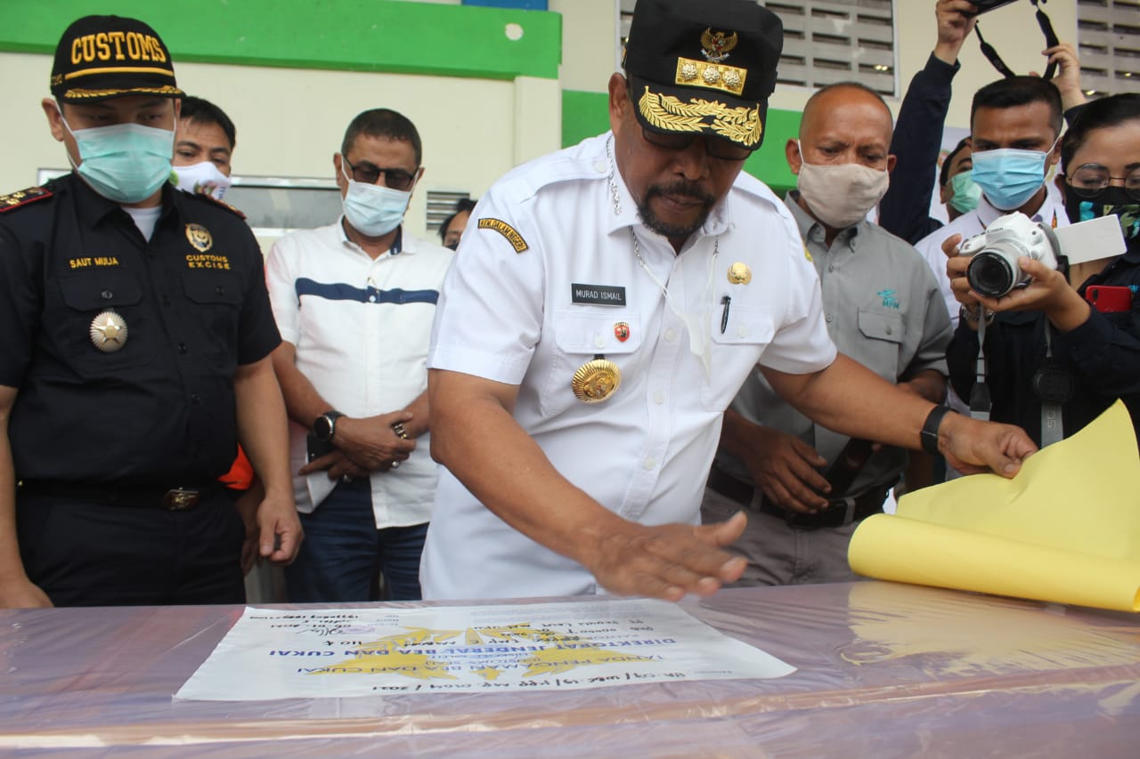 ditandai Pemasangan Label Bea Cukai dan Penyerahan Dokumen kepada PT. Peduli Laut Maluku.
