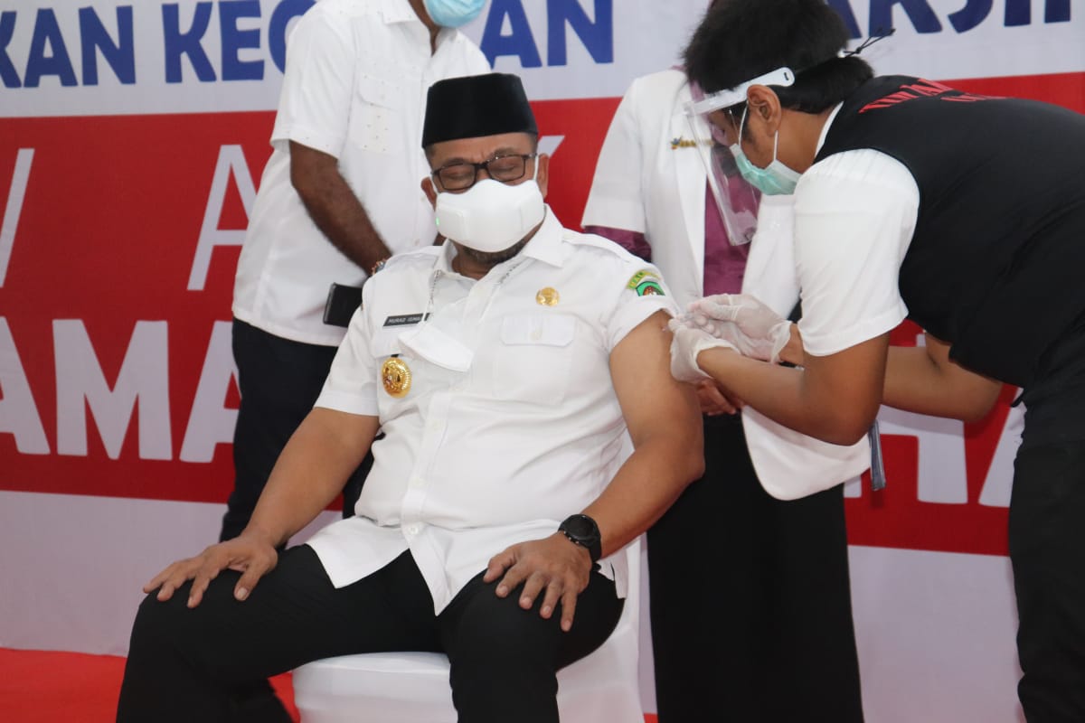 AMBON, MG.com – Untuk membuktikan diri sebagai pelayan masyarakat, Gubernur Maluku, Murad Ismail bersedia menjadi orang pertama di Maluku yang disuntik Vaksin Sinovac. Padahal, dirinya baru tuba dari Jakarta dan kurang tidur.