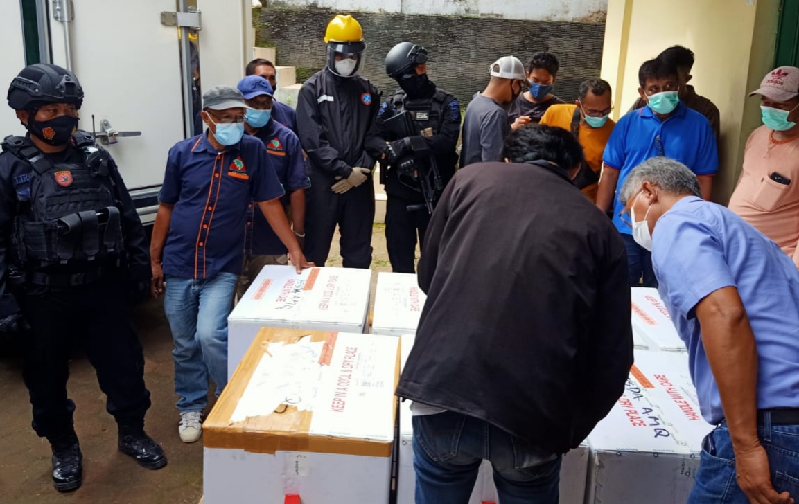 AMBON, MG.com – 14.920 dosis vaksin Sinovac tiba di Bandara Internasional Pattimura Ambon, Sabtu pagi (23/1/2021).