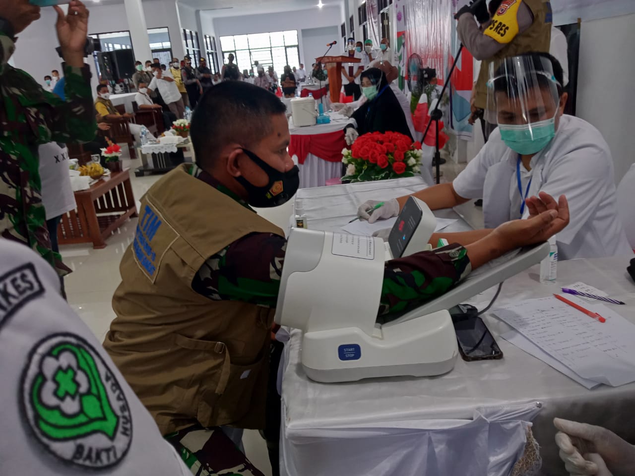 Dandim 1502/Masohi Letkol Inf Nunung Wahyu Nugroho, Kapolres SBB AKBP Bayu Tarida Butar Butar, Ketua DPRD SBB Abdul Rasid Lisaholit, Ketua Pengadilan dataran Honipopu Johanis. D. Mallo, Kepala Kejaksaan Sugih Karvallo, Sekda SBB, M.Tuharea, Kepala Dinas Kesehatan Kab. SBB dr. YohanesTapang, Direktur RSUD Piru dr. Johan Selano, Pabung Kodim 1502/masohi Mayor Inf D.Mado, Ketua FKUB SBB, M Atamimi, Klasis Seram Barat Pdt. Halliwela, Keuskupan SBB, Ketua MUI Ketua MUI SBB, Haji Samwil Nurlete, dan perserta vaksinasi Covid-19 SBB.