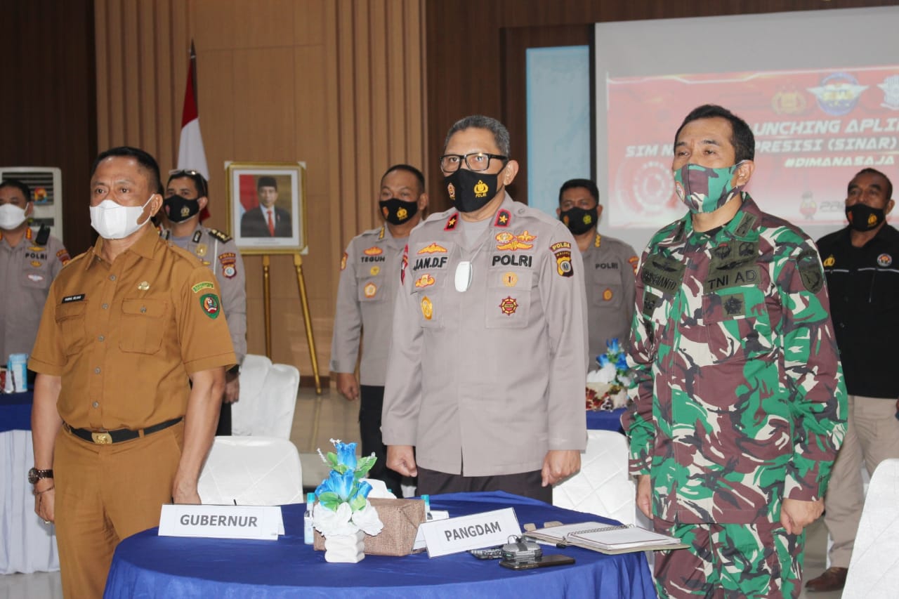 AMBON, MG.com – Wakapolda Maluku Brigjen Pol. Drs. Jan de Fretes, M.M didampingi Sekda Maluku Kasrul Selang, mengikuti peluncuran aplikasi Sinar atau SIM Nasional Presisi yang dilakukan Korlantas Polri, Selasa (13/4/2021).