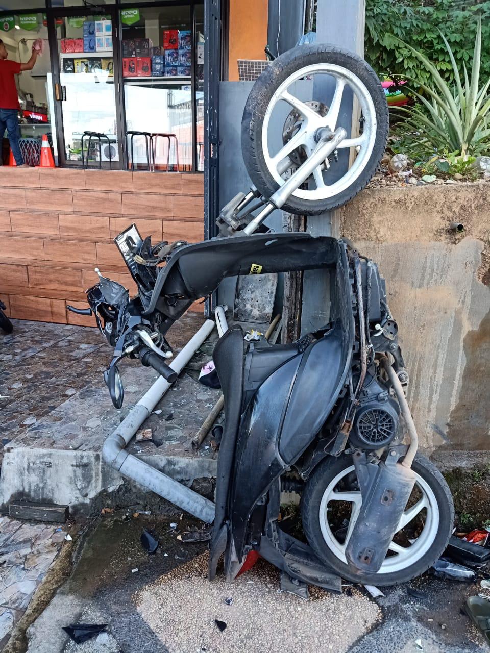 Setibanya di TKP, Siauta yang mengendarai motor, tidak dapat mengendalikan laju kendaraan nya dengan baik sehingga langsung menabrak tembok pembatas yg berada di depan toko Arman Cell.